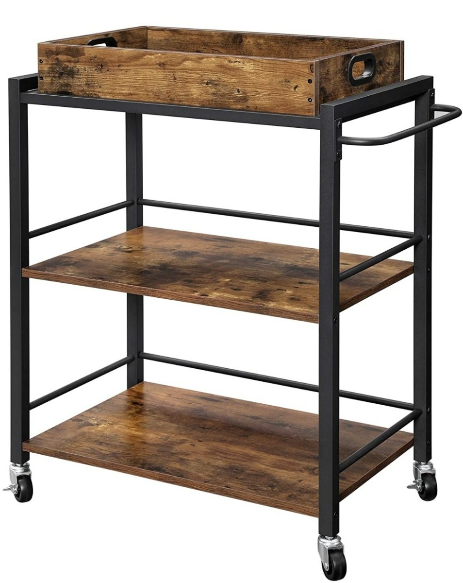 - Robuster Metall-Servierwagen in Schwarz und Braun