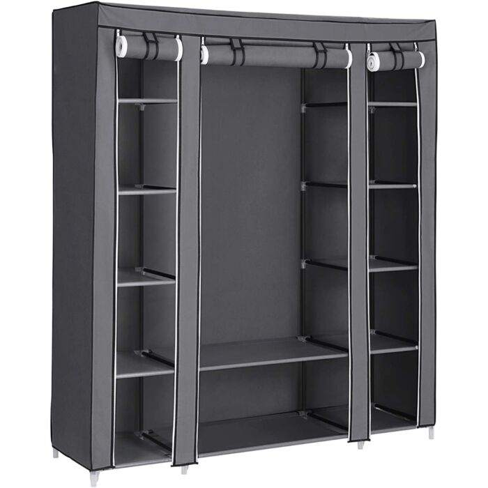 Die einfache Struktur und die große Festigkeit machen diesen Stoffschrank zu einer praktischen und langlebigen Lösung für Ihre Lagerungsbedürfnisse. Durch den reiß- und klettverschlussbeständigen Vliesstoffbezug bleibt Ihre Kleidung ordentlich und geschützt.
