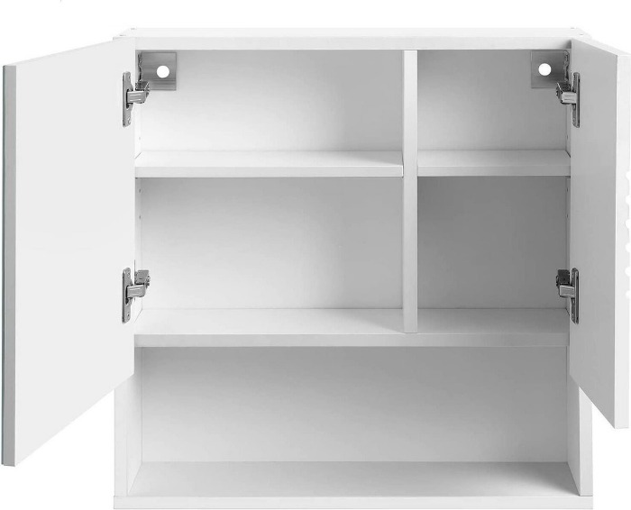 Die Maße des Spiegelkastens betragen 54 cm in der Breite, 15 cm in der Tiefe und 55 cm in der Höhe. Mit einem Gewicht von 10,3 kg ist das Möbelstück leicht zu handhaben und zu montieren. Die maximale Traglast liegt bei 15 kg, wodurch es ideal für die Aufbewahrung von Pflegeprodukten und weiteren Badutensilien geeignet ist. Der gehärtete Spiegel bietet eine klare Reflexion und sorgt für Komfort bei der täglichen Nutzung.