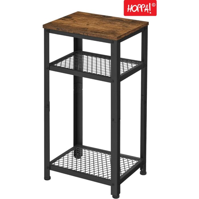 Der Hoppa! Vintage Beistelltisch in Braun/Schwarz mit Metallrahmen ist die perfekte Ergänzung für Liebhaber des Vintage-Stils. Mit seiner einzigartigen Optik und Funktionalität passt er ideal in verschiedene Bereiche Ihres Zuhauses. Dieser Beistelltisch bietet 3 zusätzliche Ablagen, darunter 2 Gitterebenen und eine Vintage-Tischplatte. Ob im Schlafzimmer, auf der Sofaseite oder im Flur, hier finden Ihr Handy, Bücher oder Schlüssel immer einen praktischen Platz. Der Aufbau des Tisches ist dank der ausführlichen Anleitung und der handlichen Einzelteile unkompliziert und erfordert keinen großen Kraftaufwand. Die Maße des Tisches betragen 40 x 30 x 75 cm (L x B x H). Unser Kundenservice steht Ihnen jederzeit zur Verfügung, sodass Sie mit Ihrem Kauf rundum zufrieden sein können. Holen Sie sich mit dem Hoppa! Vintage Beistelltisch Funktionalität und Stil in Ihr Zuhause.