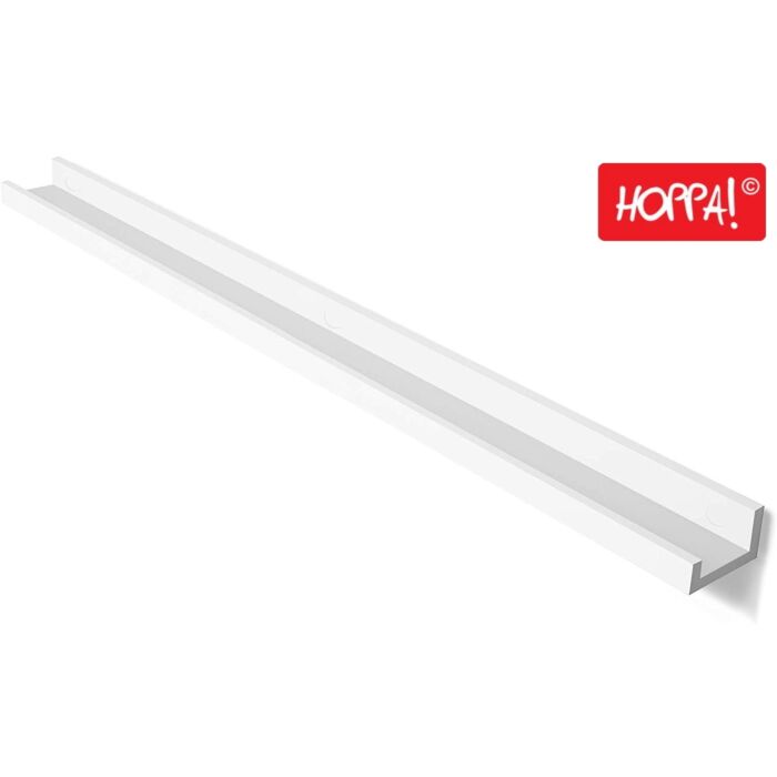 Das Hoppa! Wandregal in Weiß aus MDF ist speziell für Fotos und Dekorationen konzipiert. Mit Abmessungen von 110 x 10 x 5/2 cm bietet es eine stabile Ablagefläche, um Ihre Erinnerungen stilvoll zu präsentieren. Hergestellt aus langlebigen MDF-Platten der Klasse E1 mit einer glänzenden Oberfläche, kann dieses Regal bis zu 10 kg tragen. Verwandeln Sie mit diesem Wandregal jede leere Wand in einen attraktiven Blickfang. Ob im Wohnzimmer, Kinderzimmer oder in der Küche, die vielseitige Nutzungsmöglichkeit dieses Regals macht es zur idealen Aufbewahrungslösung. Die weiße Oberfläche verleiht Ihrem Zuhause einen klassischen und modernen Touch und fügt sich nahtlos in jede Einrichtung ein. Die Installation ist denkbar einfach und schnell. Mit vorgebohrten Löchern kann das Regal sicher an der Wand befestigt werden. Zusätzlich werden weiße Aufkleber mitgeliefert, um die Schraubenköpfe abzudecken und die dekorative Wirkung des Regals zu erhalten. Genießen Sie Funktionalität und Ästhetik in einem mit dem Hoppa! Wandregal.