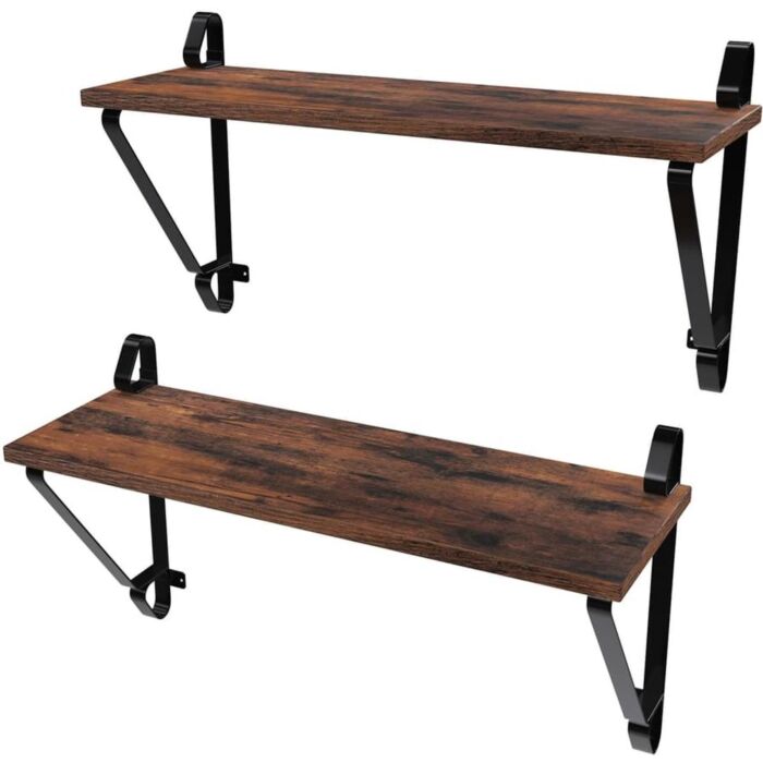 Das Wandregal besteht aus robusten Eisenbügeln und MDF-Platten in den Maßen 60 x 32 x 20 cm (B x H x T). Jede Ablage kann bis zu 15 kg Gewicht tragen, was ausreichend Platz für Dekorationen, Bücher oder andere Gegenstände bietet.
