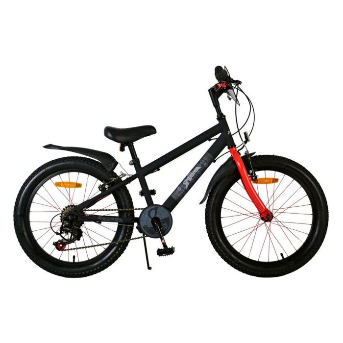 Das Fahrrad verfügt über 20 Zoll große Räder, die eine ausgewogene Fahrt bieten. Das stilvolle mattschwarze Finish wird durch auffällige rote Akzente veredelt. Der Sattel und die Griffe sind speziell auf den Komfort für Kinder ausgelegt, während die große Schutzbleche Schmutz vom Kind fernhalten.