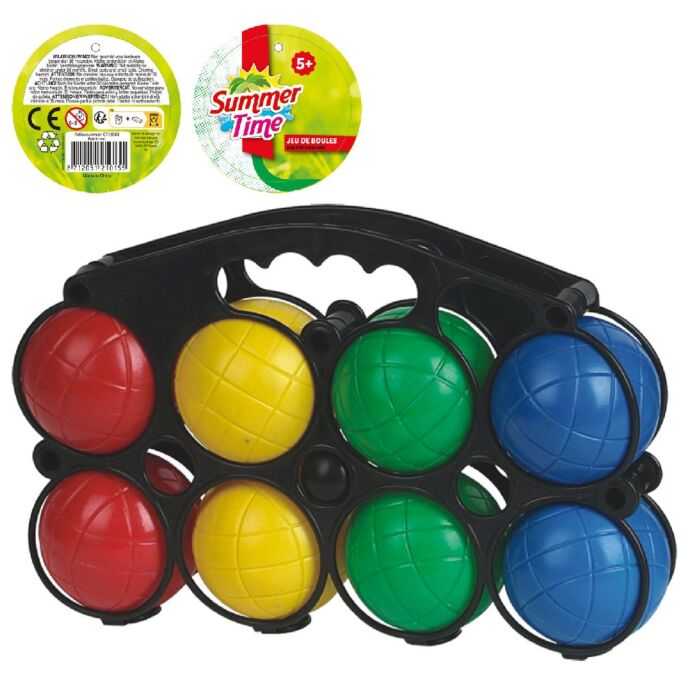 Das Sommer Pétanque 8+2 (0713003) Set ist ein hochwertiges Jeu de Boule-Set aus Kunststoff, das sowohl für Anfänger als auch für erfahrene Spieler geeignet ist. Es beinhaltet 8 Kugeln und 2 Markierungsbälle in einer praktischen Trageschale für einfachen Transport und Aufbewahrung. Dieses Set ist ideal für Outdoor-Spiele und Unterhaltung im Garten, Park oder am Strand. Geeignet ab 5 Jahren.