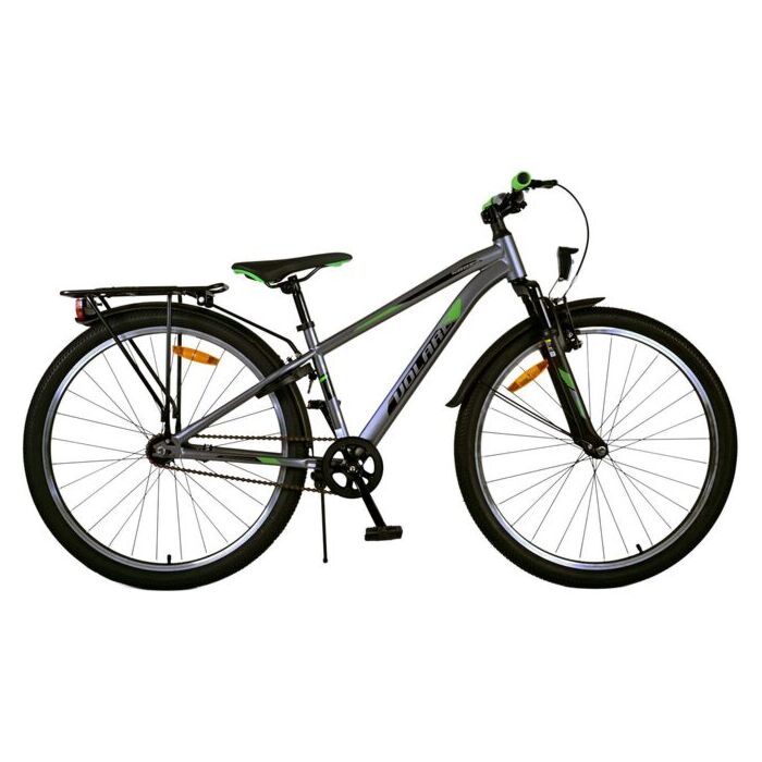 Das moderne, dunkelgraue Design des Volare Cross fällt sofort ins Auge. Der komfortable Sitzbereich sorgt dafür, dass längere Fahrten für Ihr Kind angenehm sind. Zudem bietet der Gepäckträger zusätzlichen Platz, um Spielzeug oder Schulmaterial problemlos zu transportieren. Der Standfuß sorgt dafür, dass das Fahrrad jederzeit stabil steht und jederzeit bereit für den nächsten Einsatz ist.