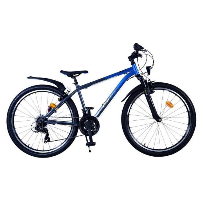 Das Fahrrad hat die ideale Größe von 26 Zoll für Kinder und ist so konzipiert, dass es lange mitwachsen kann. Durch eine lange Sattelstütze lässt sich das Fahrrad an die wachsenden Bedürfnisse Ihres Kindes anpassen. Der Rahmen in satiniertem Grau mit blauen Akzenten aus widerstandsfähigem Material sorgt für Langlebigkeit und Sicherheit.