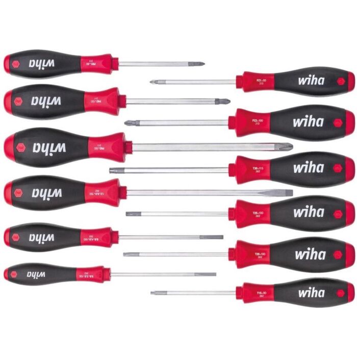 Die Schraubendreher sind in verschiedenen Größen erhältlich, die ein breites Spektrum an Anwendungen abdecken. Die Klingen bestehen aus hochwertigem Stahl, der für seine Robustheit und Langlebigkeit bekannt ist, während die SoftFinish-Griffe aus einem rutschfesten Material gefertigt sind, das zusätzlichen Komfort bietet.