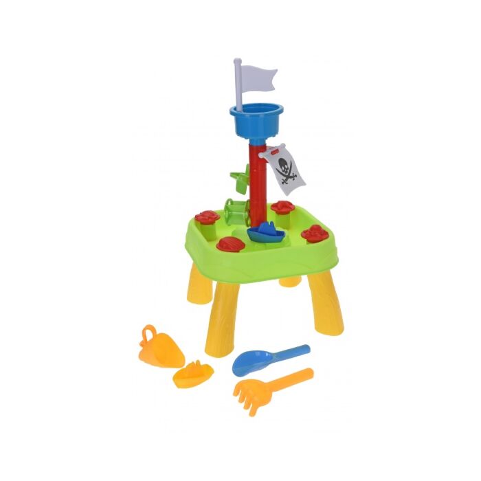 Pro Beach Sand- und Wassertischpiraten Mit diesem stabilen Sand- und Wassertisch lässt es sich wunderbar spielen. Bauen Sie mit den mitgelieferten Werkzeugen die schönsten Sandburgen. Lassen Sie das Wasser durch den Mast laufen, um die Räder zu drehen.
